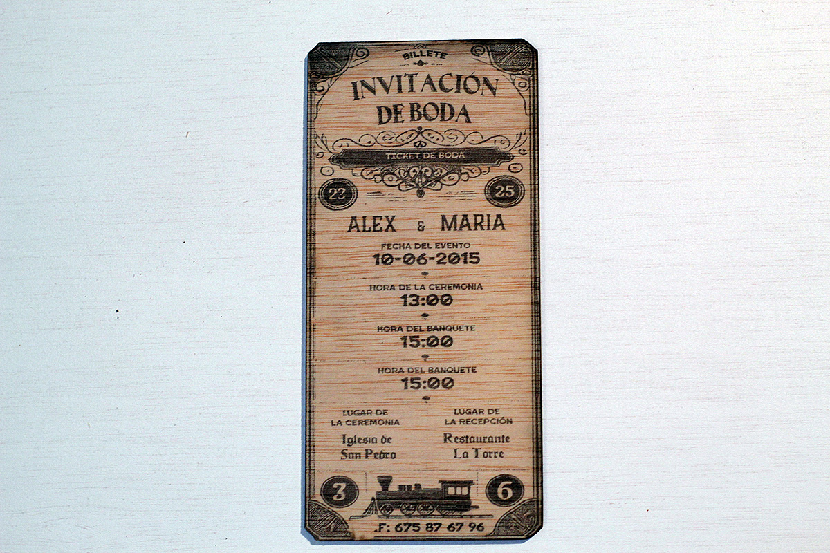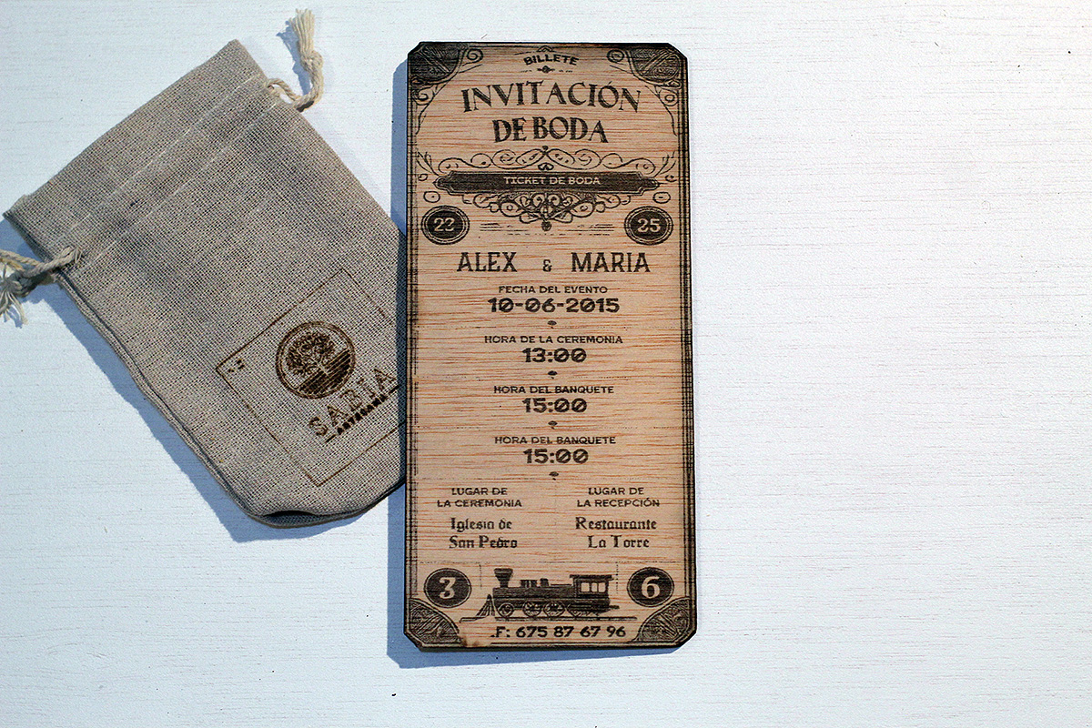 Invitación de Boda de Madera «Billete de Tren Vintage»