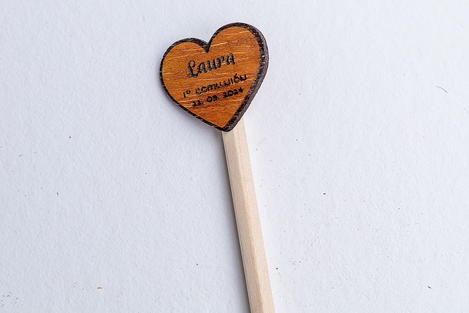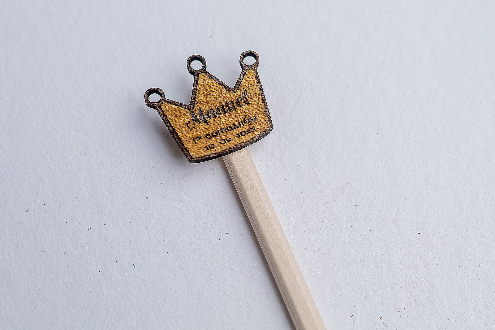 - ✍️ Personalización al Detalle: Cada figura de madera lleva grabado a láser el nombre del protagonista de la Comunión y la fecha del evento, junto a la inscripción «1ª Comunión». Es un recuerdo personalizado que no se borra.