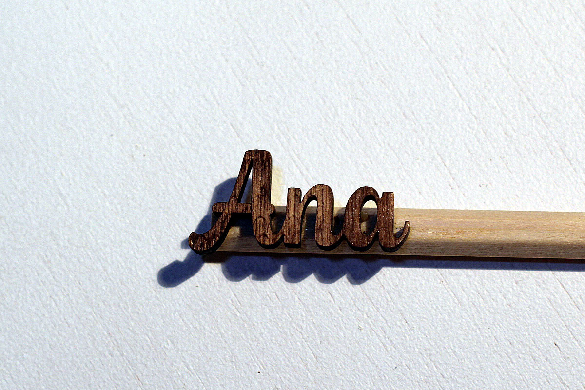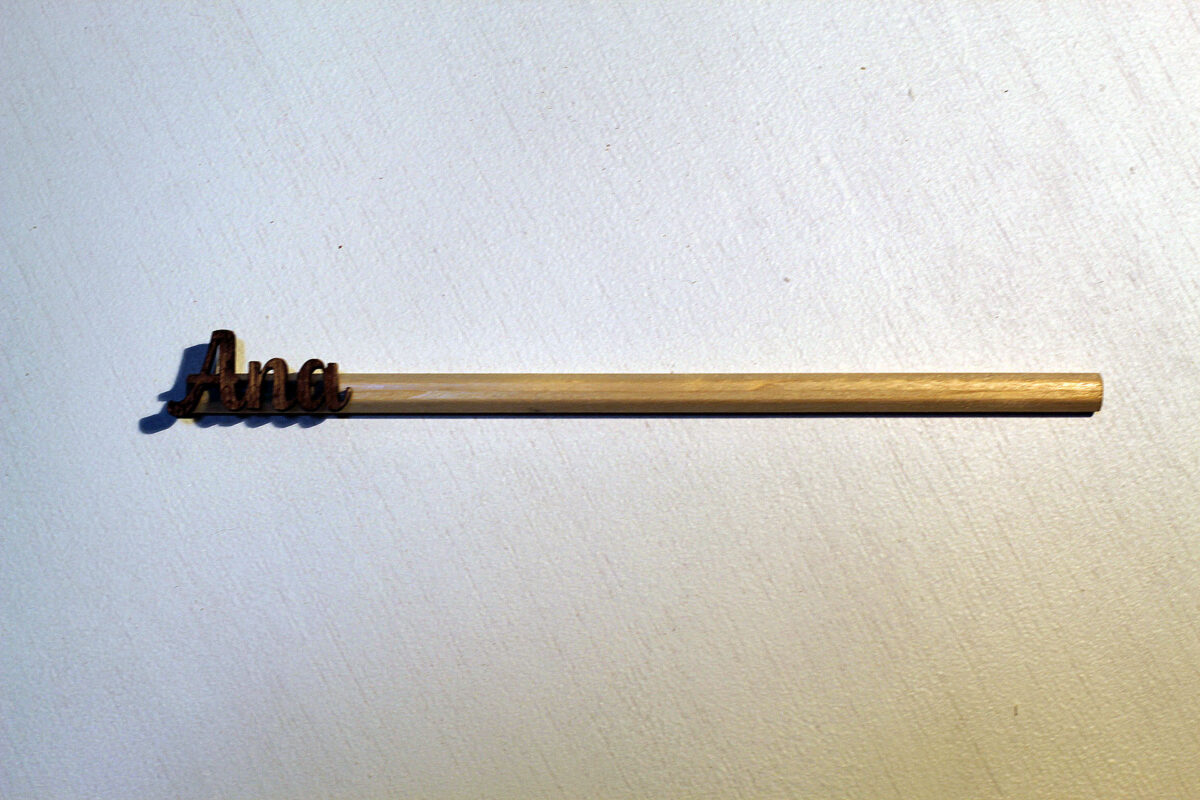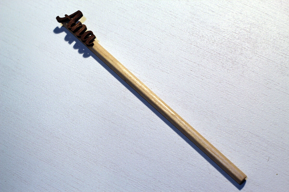 • Materiales: Lápiz de madera de grafito HB estándar + Nombre en madera/DM.