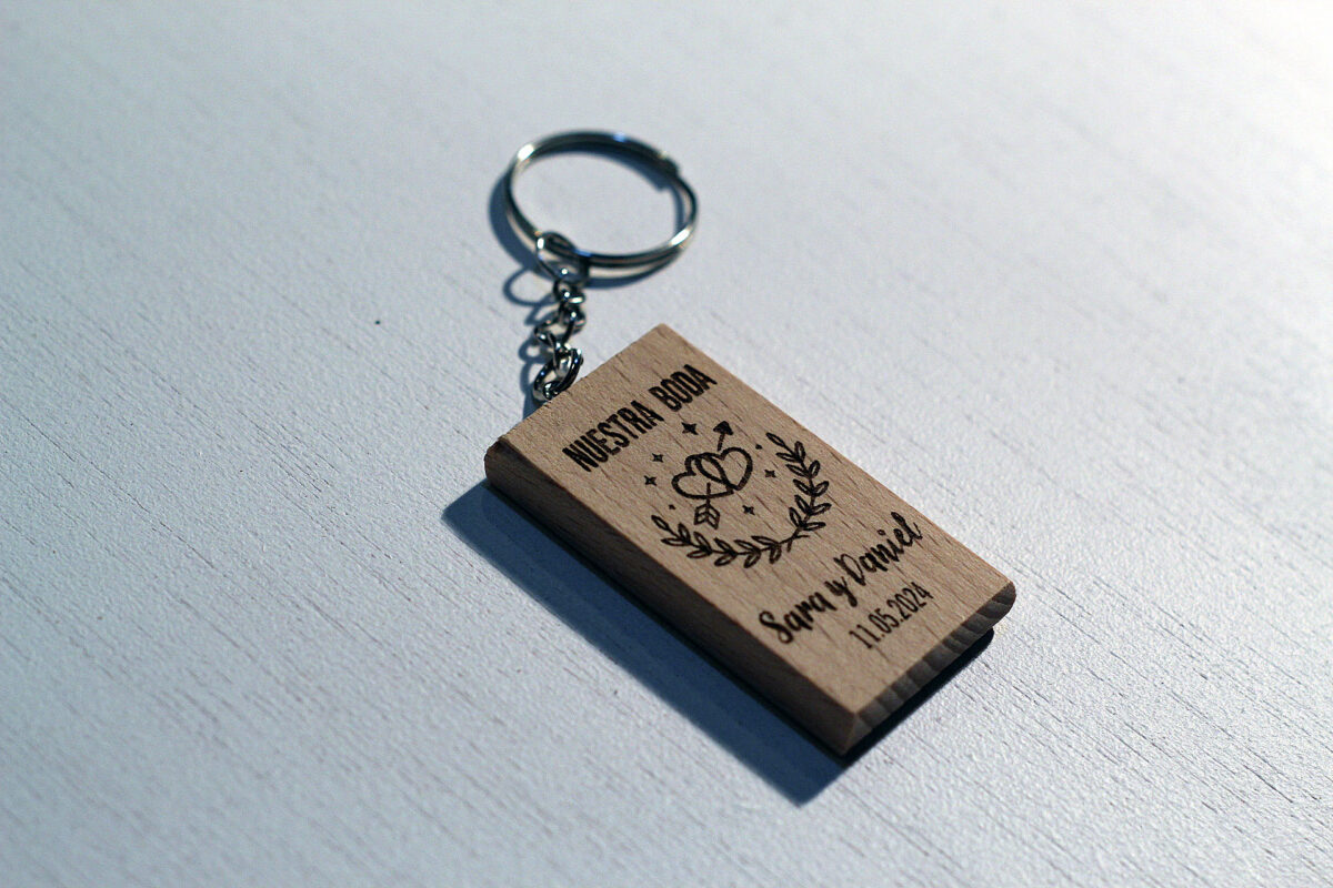 • 🌳 Madera de Haya Premium: Utilizamos madera maciza de haya por su durabilidad y belleza. Es resistente al roce de las llaves y tiene un tono natural que hace que el grabado láser oscuro resalte con claridad.